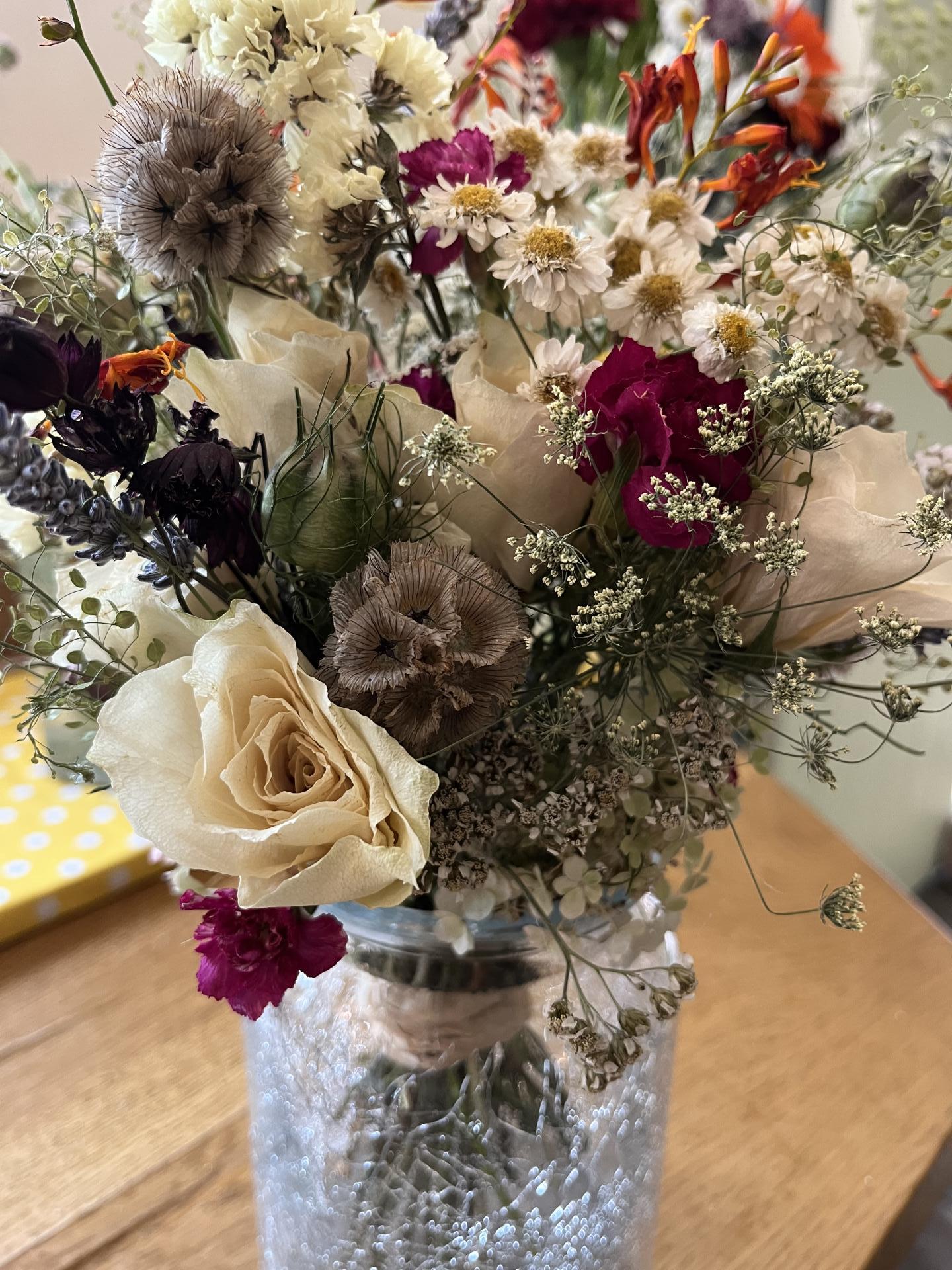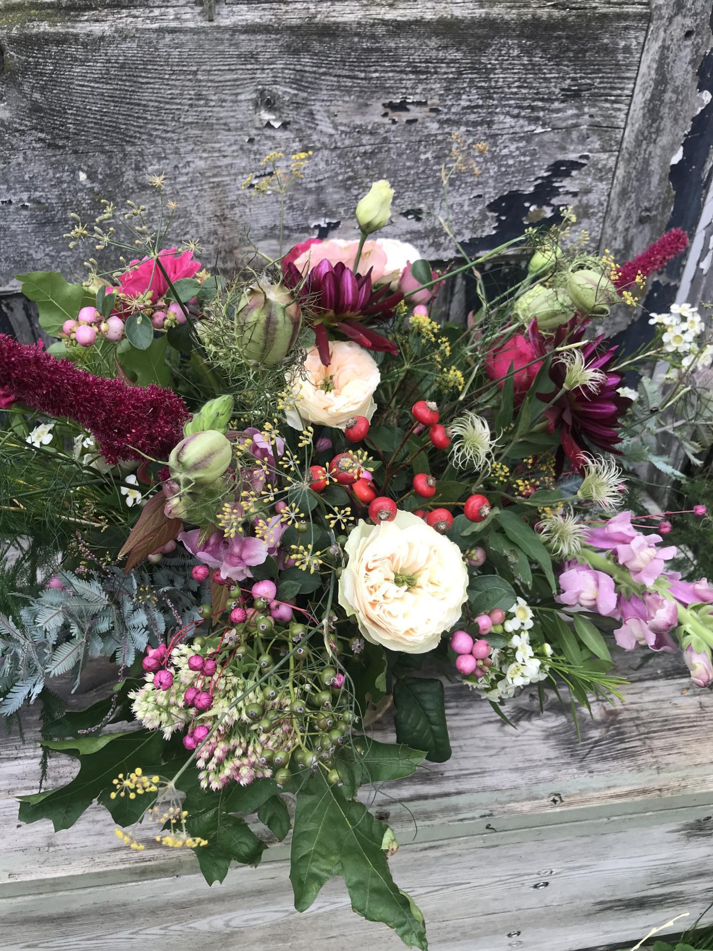 Working with the customer in mind, I will create a personalised bouquet or arrangement, using fresh flowers and foliage from local growers and from my own garden, when seasonally available, or from reputable suppliers in Yorkshire.